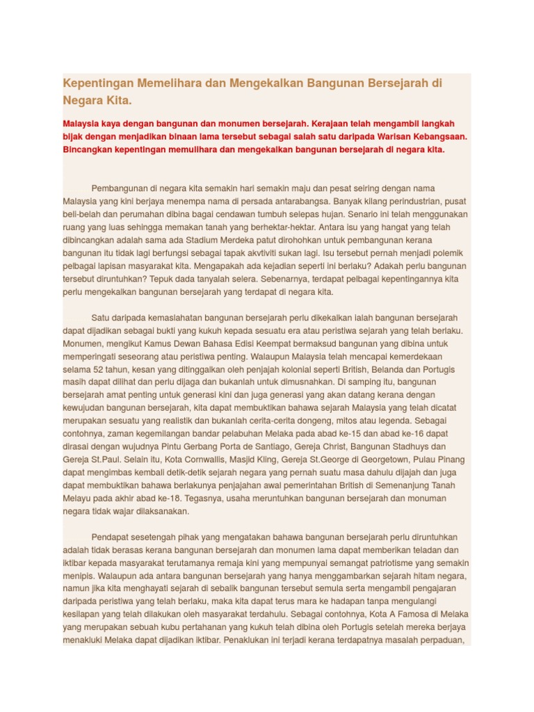 Karangan Kepentingan Bangunan Bersejarah Di Kekalkan Pdf